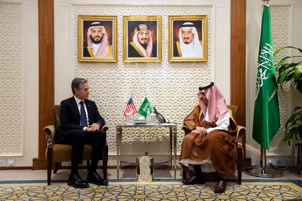 US Secretary of State Antony Blinken (left) meeting Saudi Foreign Minister Prince Faisal Bin Farhan in Riyadh on Saturday.