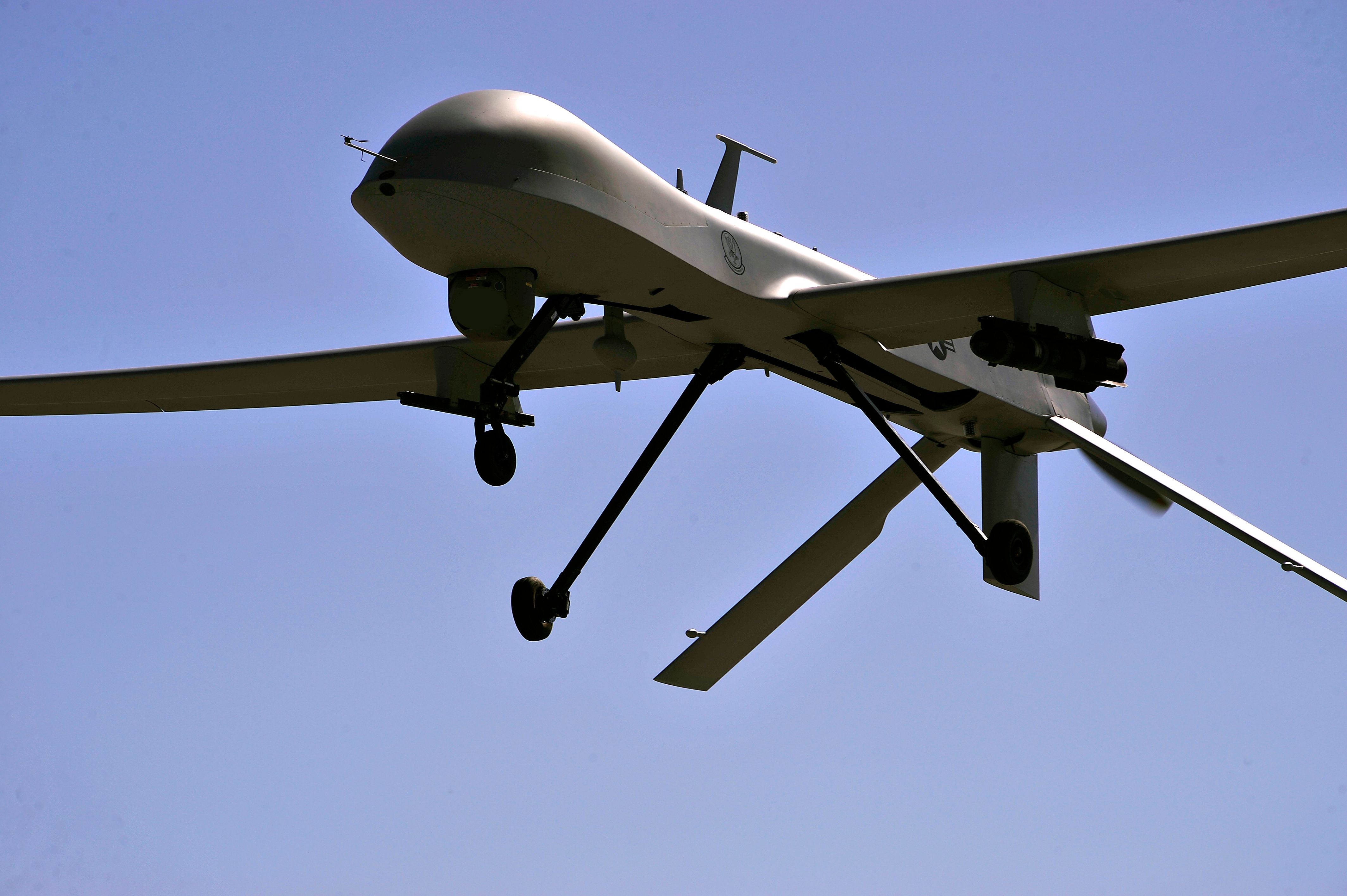 An MQ-1B Predator drone is seen in flight during a training mission in the US.