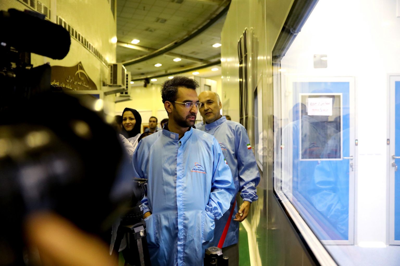 Iran's Minister of Information and Communications Technology Mohammad Javad Azari Jahromi visits the space research centre in Teheran.