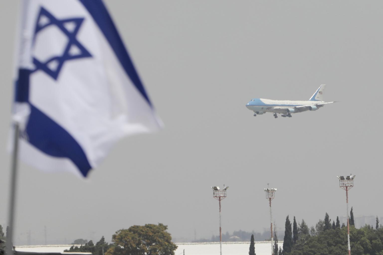 Air Force One, with US President Donald Trump and First Lady Melania Trump, approaches Ben Gurion Airport.