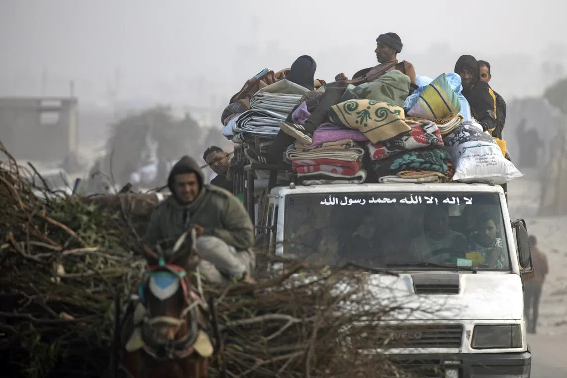 Displaced Palestinians head south, after the Israeli army told residents of Khan Younis camp to leave and go to the Rafah camp near the Egyptian border.