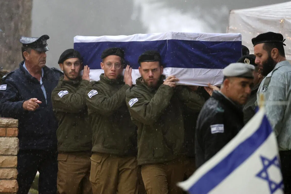 Israeli soldiers carry the coffin of IDF soldier Elkana Vizel, during his funeral at the Mount Herzl military cemetery in Jerusalem.