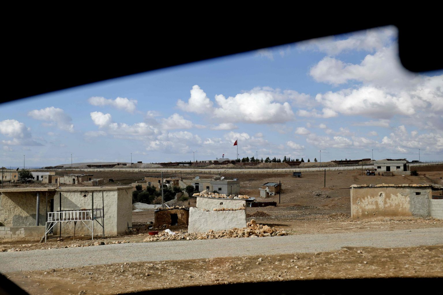 A Turkish flag flies at a military post in the countryside village of Ashma near the border with Turkey in the Kurdish city of Kobane in northern Syria on Nov 8, 2018.