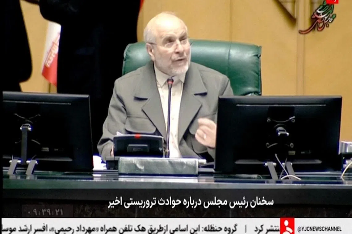 Iran’s Parliament Speaker, Mr Mohammad Baqer Qalibaf, speaks in Parliament about Iran’s response to possible US attacks, in Tehran, Iran on Jan 11.