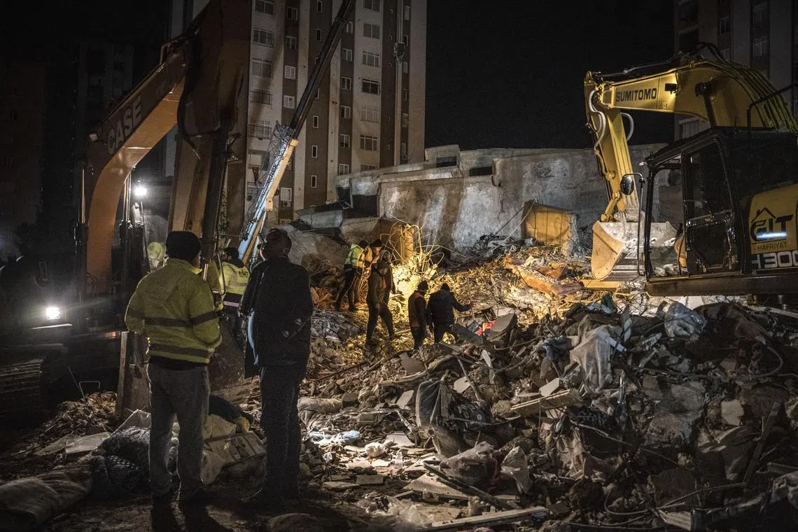 Emergency personnel during a search and rescue operation at the site of a collapsed building in Adana, Turkey, on Feb 7, 2023.
