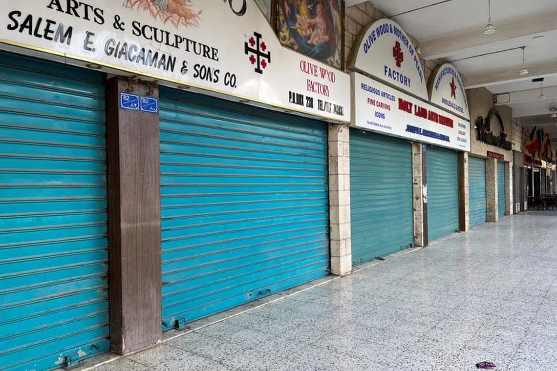Shuttered souvenir shops around the Manger Square in Bethlehem, in the Israeli-occupied West Bank.