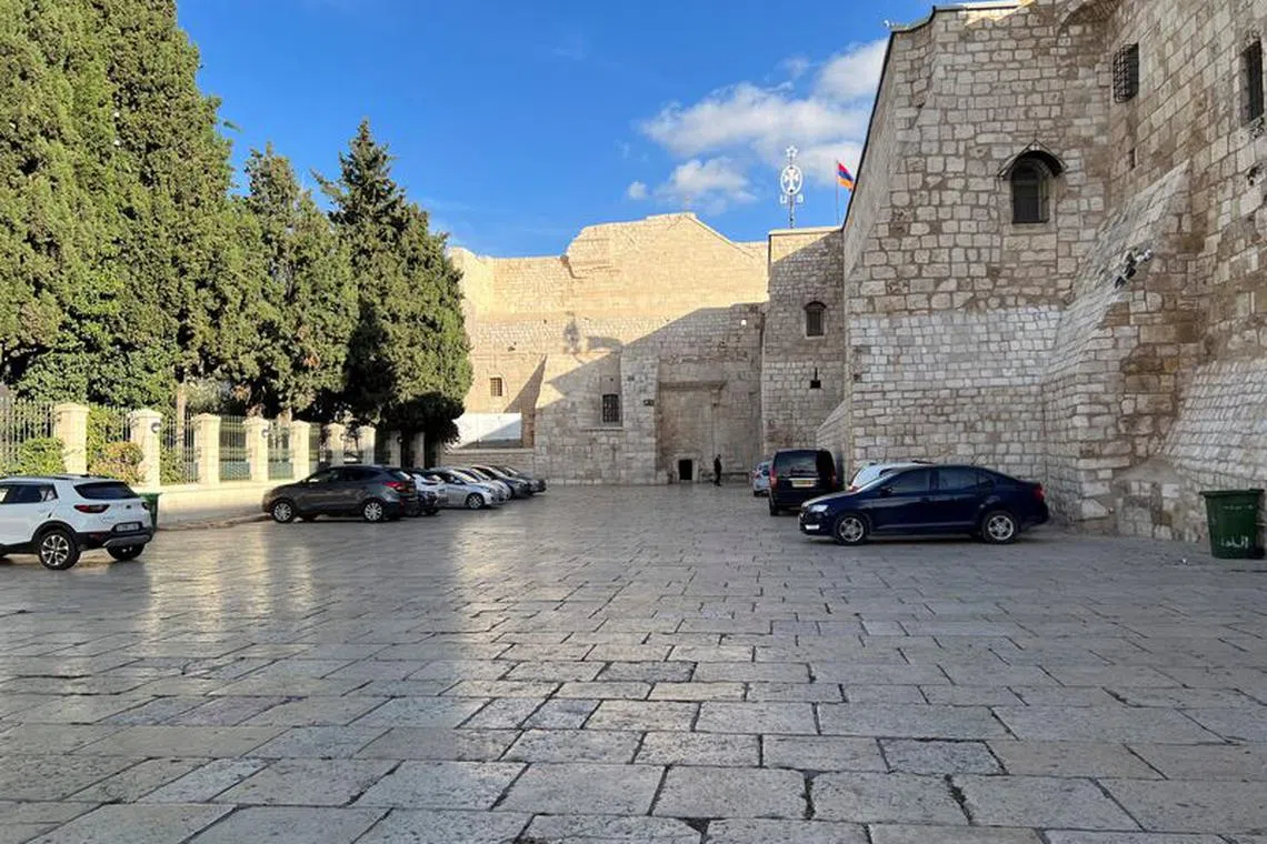 A view of an almost empty compound of the Church of Nativity in Bethlehem, in the Israeli-occupied West Bank.