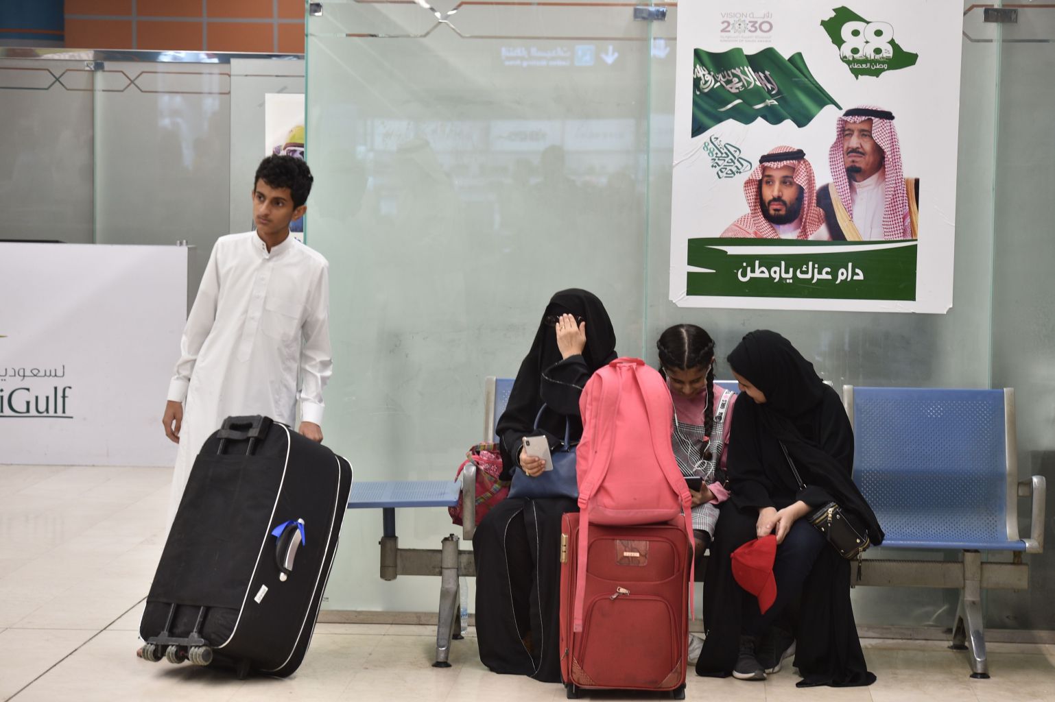 Passengers waiting for a flight at Abha airport, one day after a Yemeni rebel missile attack.