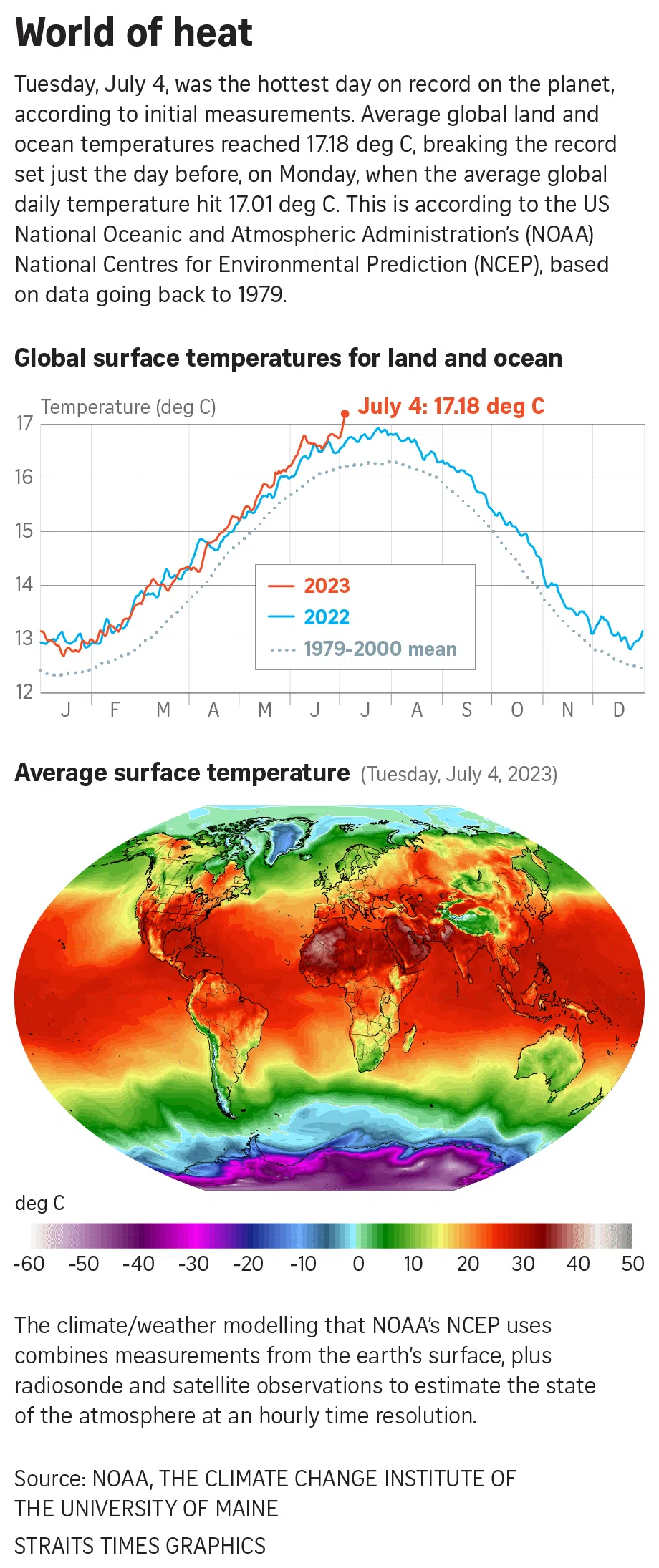 The average daily temperature for the planet – land and ocean – reached 17.18 deg C, according to data from the National Centres for Environmental Prediction (NCEP), which is part of the US National Oceanic and Atmospheric Administration.