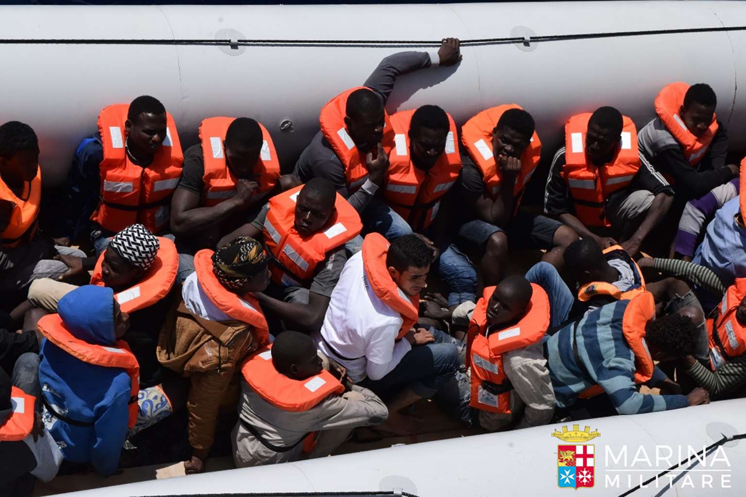 This handout picture released by the Italian Navy (Marina Militare) shows a rescue operation of migrants and refugees at sea, off the coast of Libya, on June 23, 2016.