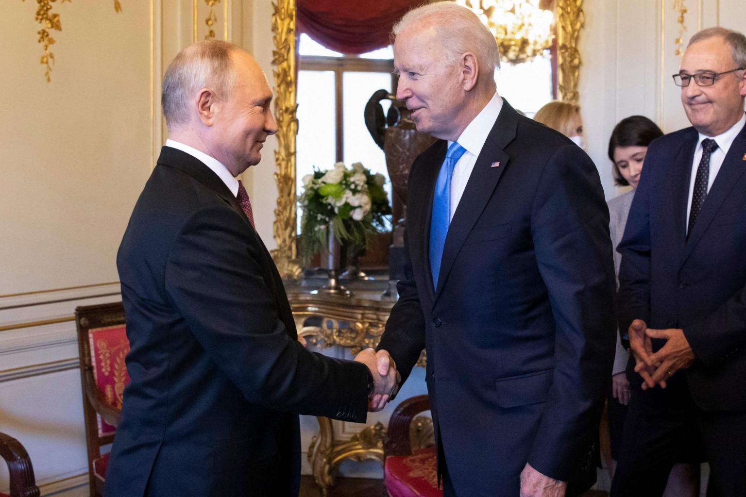 Russian President Vladimir Putin (left) and US President Joe Biden met at a historic summit in Geneva, on June 16, 2021.
