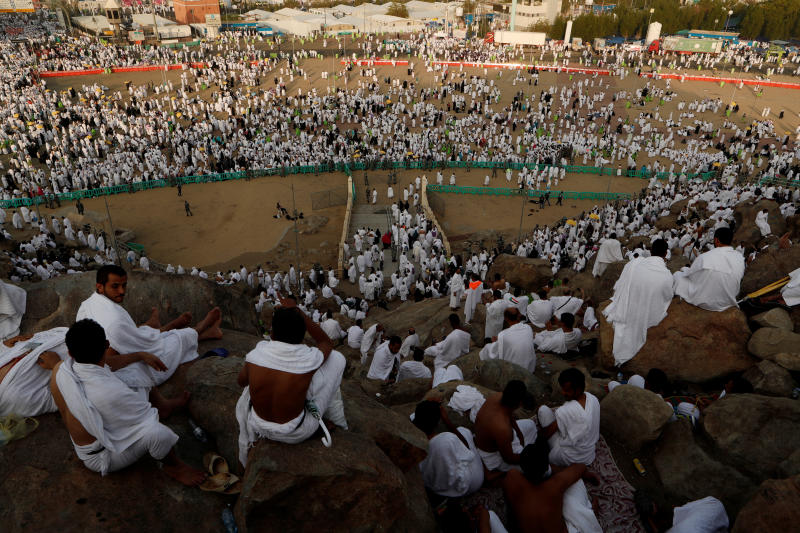Muslim pilgrims gather on Mount Mercy on the plains of Arafat during the annual haj pilgrimage, outside the holy city of Mecca, Saudi Arabia, on Aug 20, 2018.
