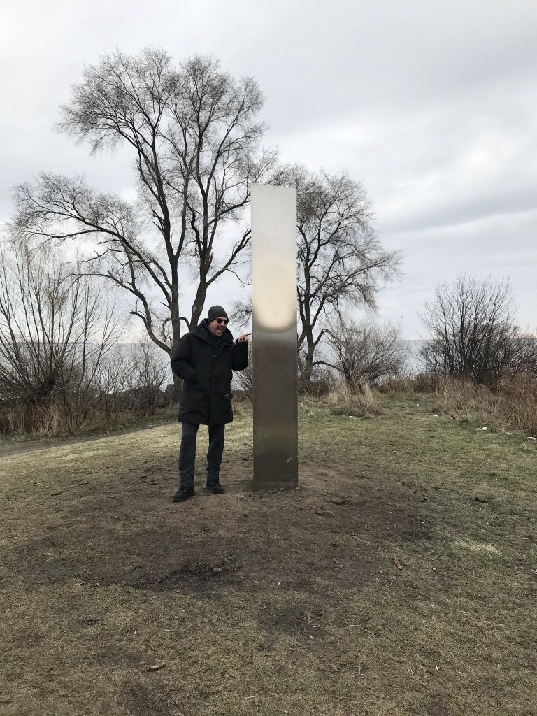 Canadian media said the 4m-tall shiny metal structure, which appeared to be hollow, was spotted on the city's shore on New Year's Eve.