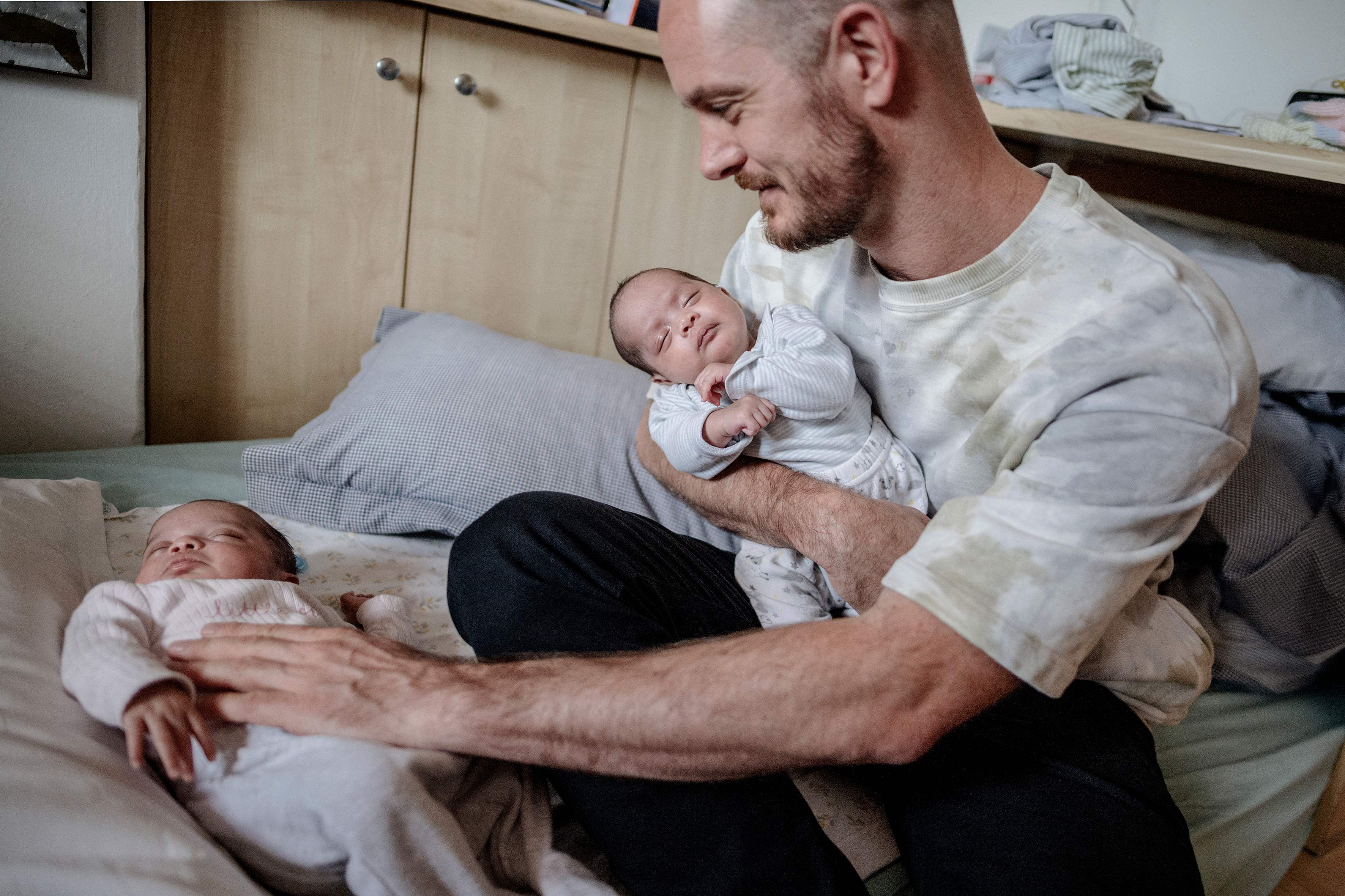 Namibian Phillip Luhl with his twin daughters, born to a surrogate in South Africa.