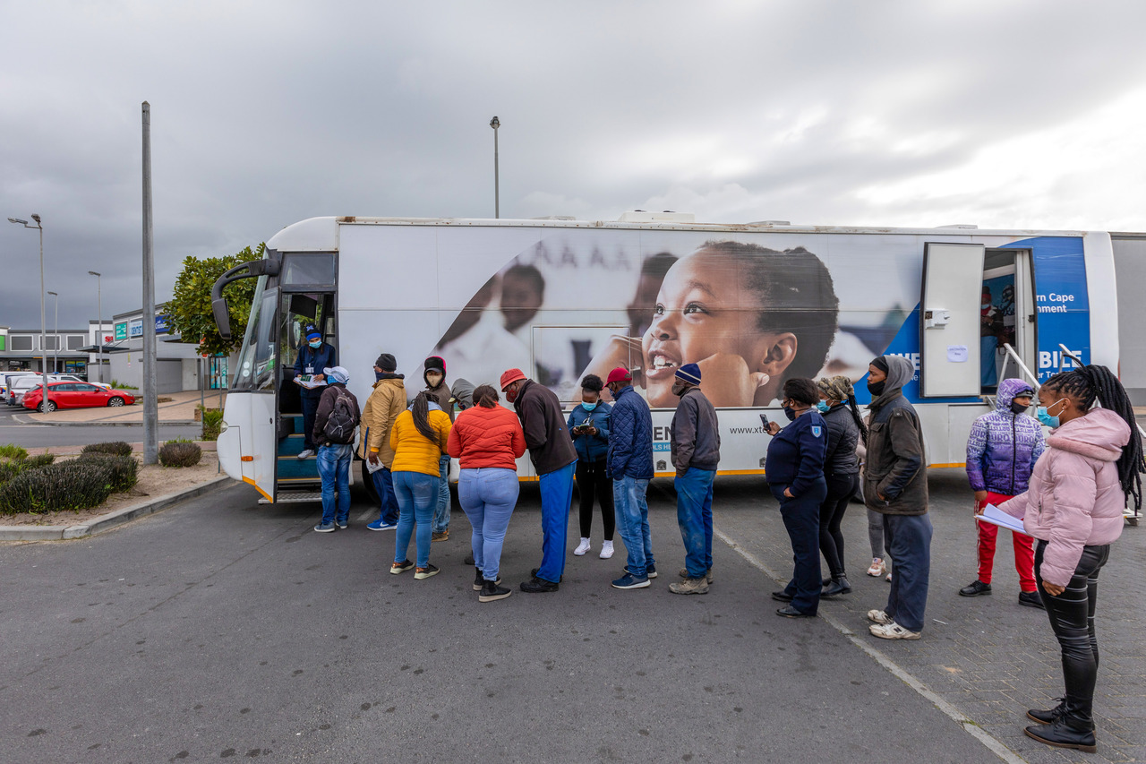 Residents wait in line for a Covid-19 vaccine in Cape Town, South Africa on Aug 26, 2021.