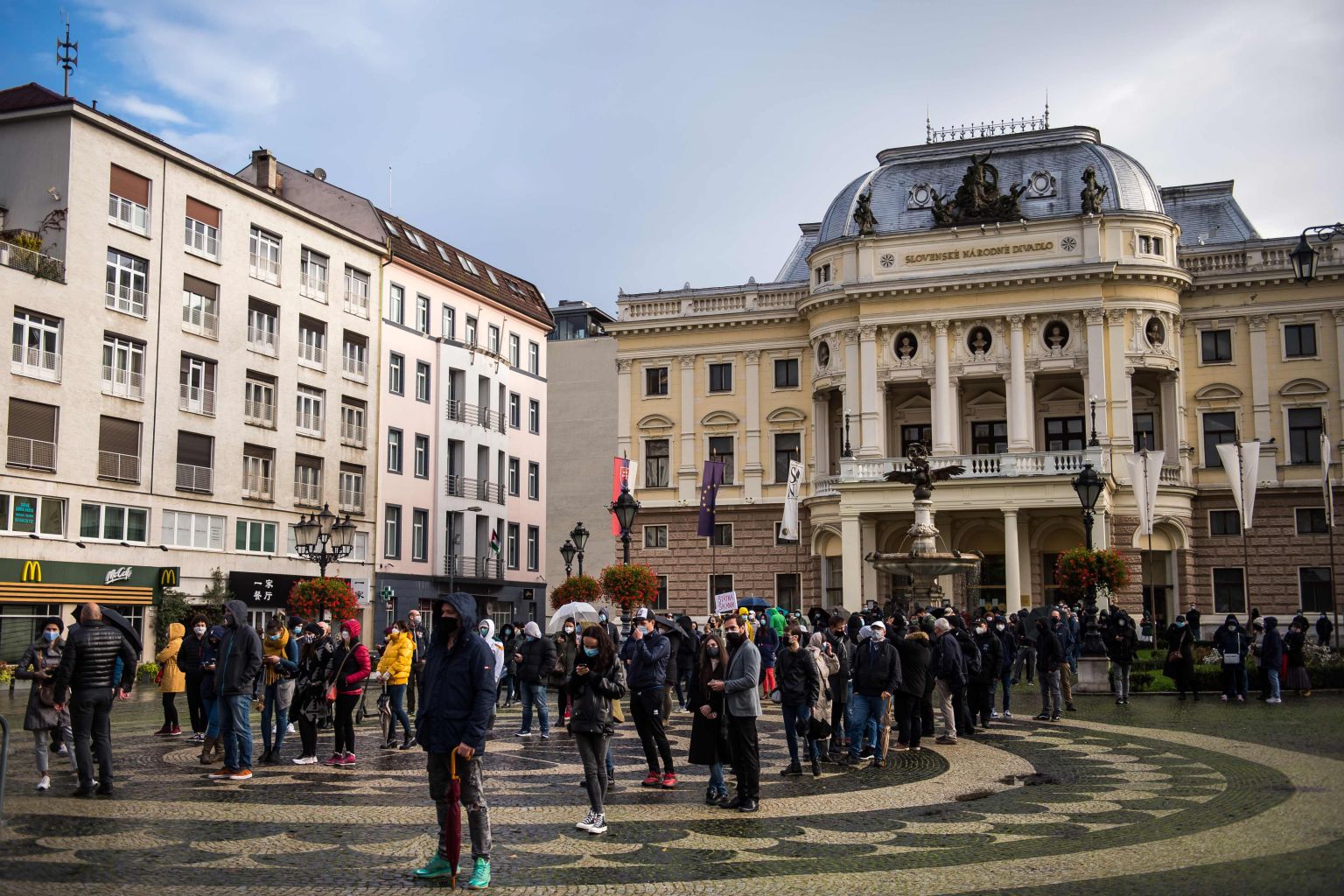 People wait in line for Covid-19 testing in Bratislava, Slovakia, on Oct 31, 2020.