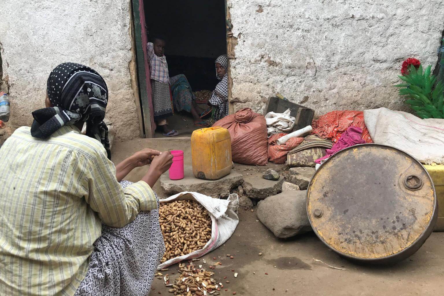 A woman prepares groundnuts outside her home in a neighbourhood in Harar, Ethiopia, on July 22, 2018.