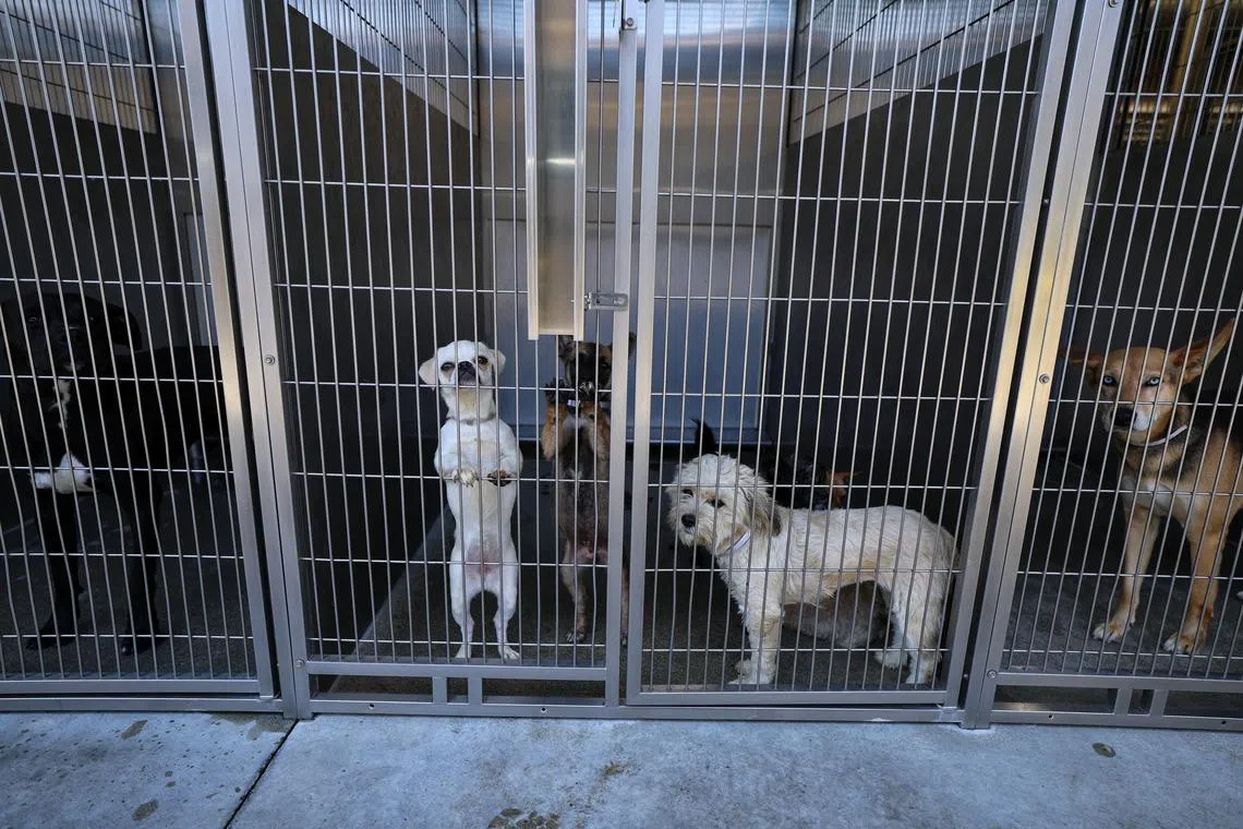Dogs, left behind after their owners were detained in immigration raids, kept in kennels in Los Angeles.
