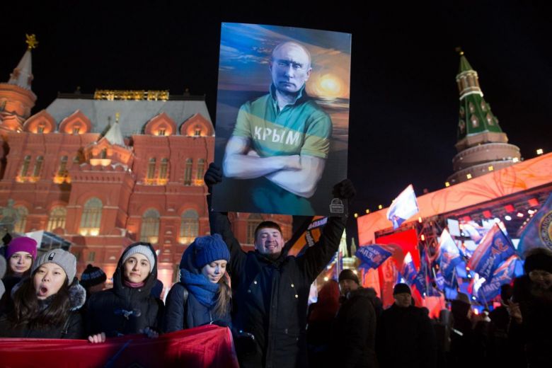 Supporters of Vladimir Putin, celebrating during a rally near the Kremlin in Moscow, Russia, on March 18, 2018.