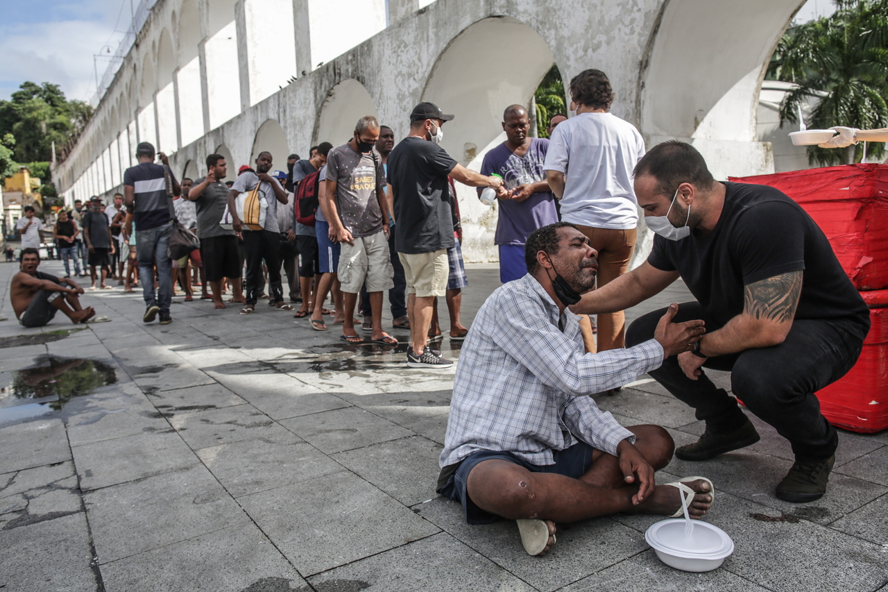 Volunteers distributing food to poor people in Rio de Janeiro on April 21, 2021.