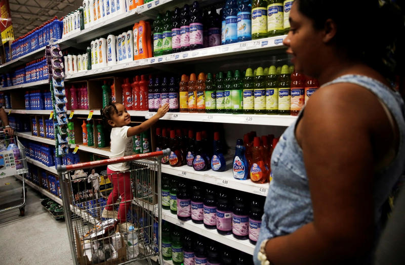 Cleaning products are seen on a supermarket shelf in Sao Paulo, Brazil, on Nov 24, 2016.