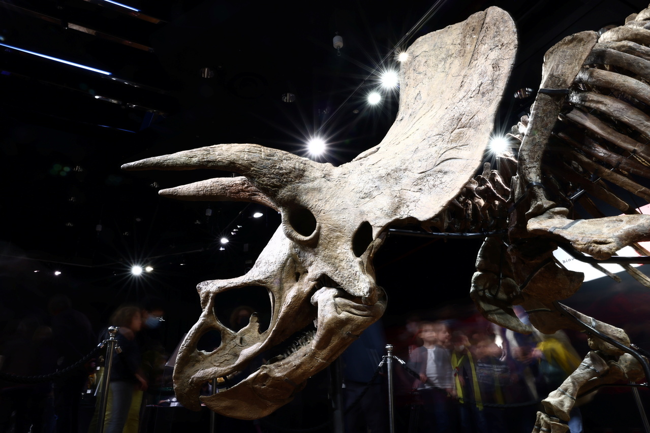 PARIS (REUTERS) - The fossilised remains of 'Big John', the largest triceratops dinosaur ever discovered by paleontologists, sold for €6.65 million (S$10.42 million) at a Paris auction on Thursday (Oct 21) to a private, anonymous US collector.
