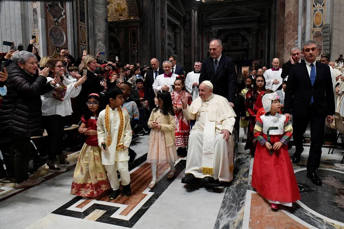 Francis, celebrating the 10th Christmas of his pontificate, presided at a solemn Christmas Eve Mass in St. Peter’s Basilica.