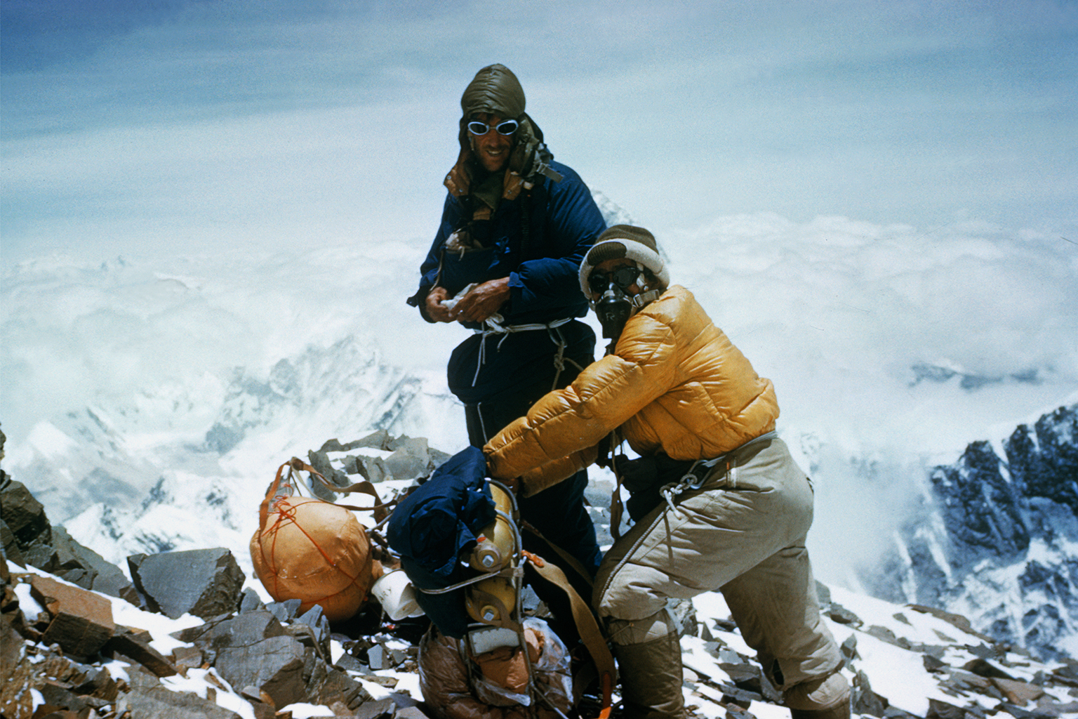 Sir Edmund Hillary (in blue) and Mr Tenzing Norgay’s ascent to the peak of Mount Everest in 1953 was a historic feat and also brought Rolex and National Geographic Society together as partners.