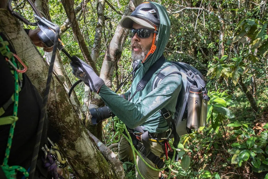 “When you’re in the Andes, you are at minus 20 degrees Celsius and up at 6,000 metres. You are in down suits with ice axes and crampons and tents,” he says. “And when you’re in the lowlands rainforest, then you’re in scuba gear and trying to dive in these remote places.”