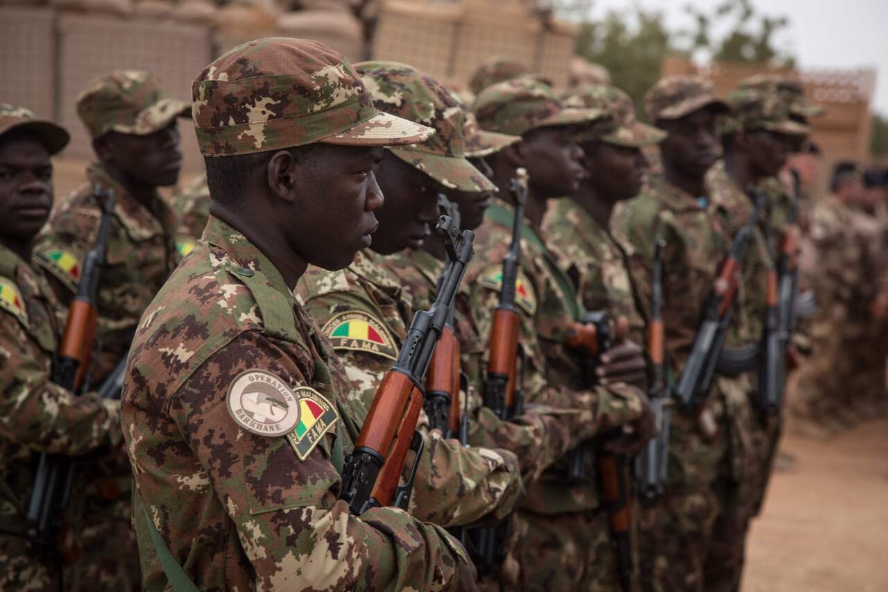 Malian soldiers at the Barkhane military base handover ceremony from the French in Timbuktu, on Dec 14, 2021.