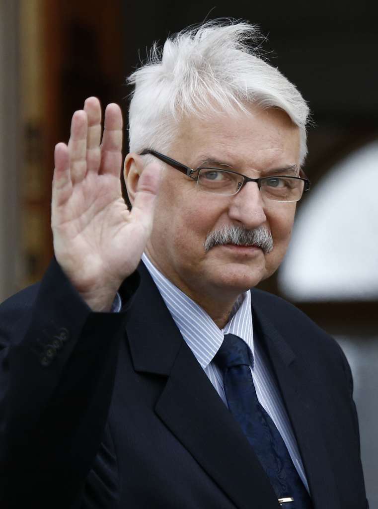 Polish Foreign Minister Witold Waszczykowski waves at the Lazienki Palace in Warsaw, Poland on Jan 21, 2016.