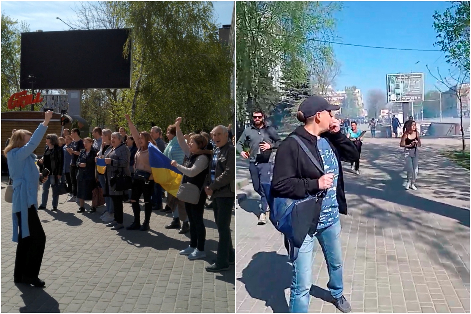 Crowds gathered for an anti-occupation rally were dispersed with tear gas in Kherson on April 27, 2022.