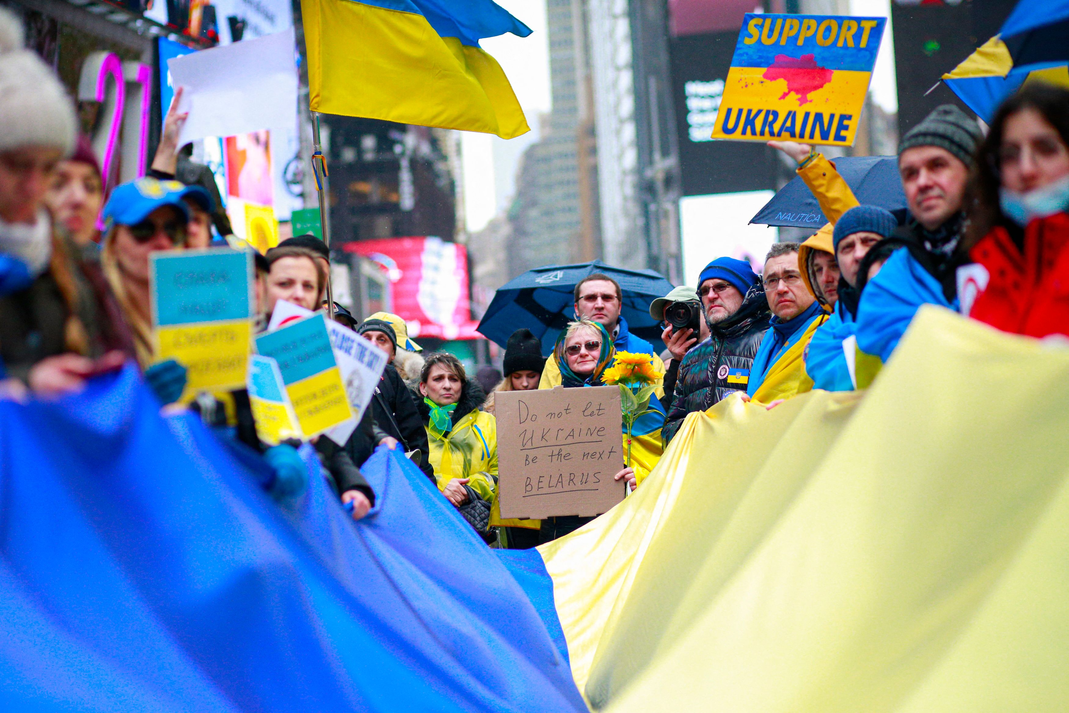 A rally in support of Ukraine in Times Square, New York, on March 12, 2022.