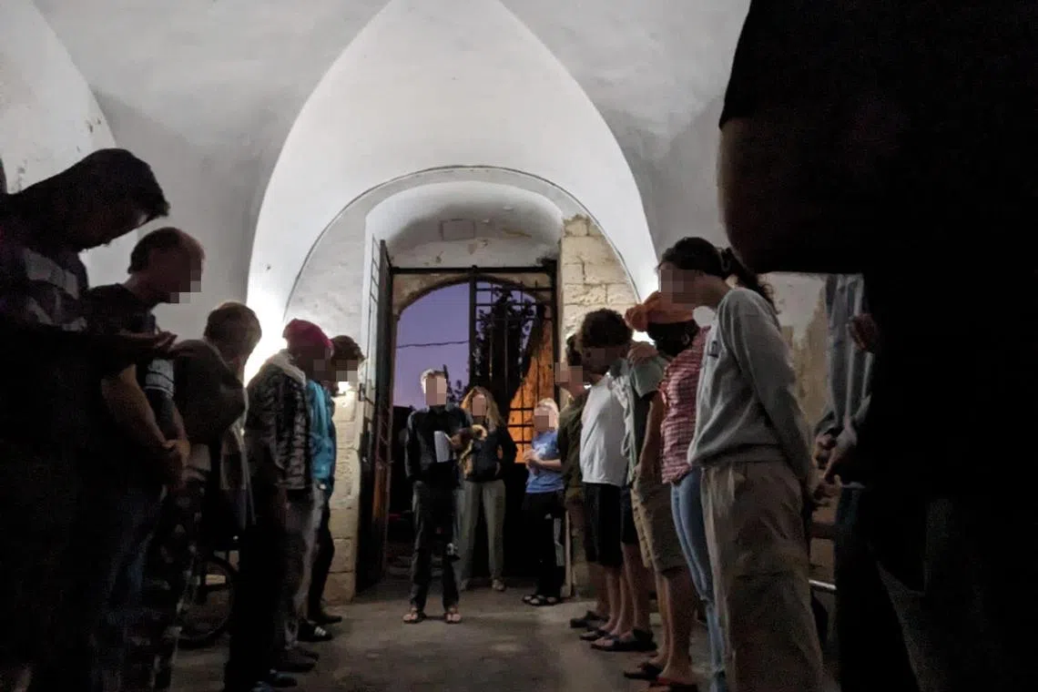 A group of students from Jerusalem University College gathering before embarking on their journey to Jordan.