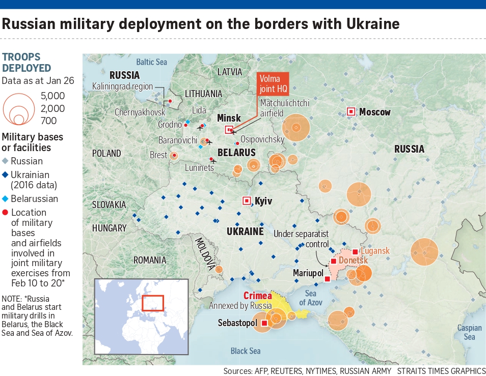 MOSCOW (REUTERS) - Commercial satellite images published by a private US company on Thursday (Feb 10) show new Russian military deployments at several locations near Ukraine, suggesting that Moscow's force build-up continues amid a flurry of diplomacy aimed at easing the crisis.