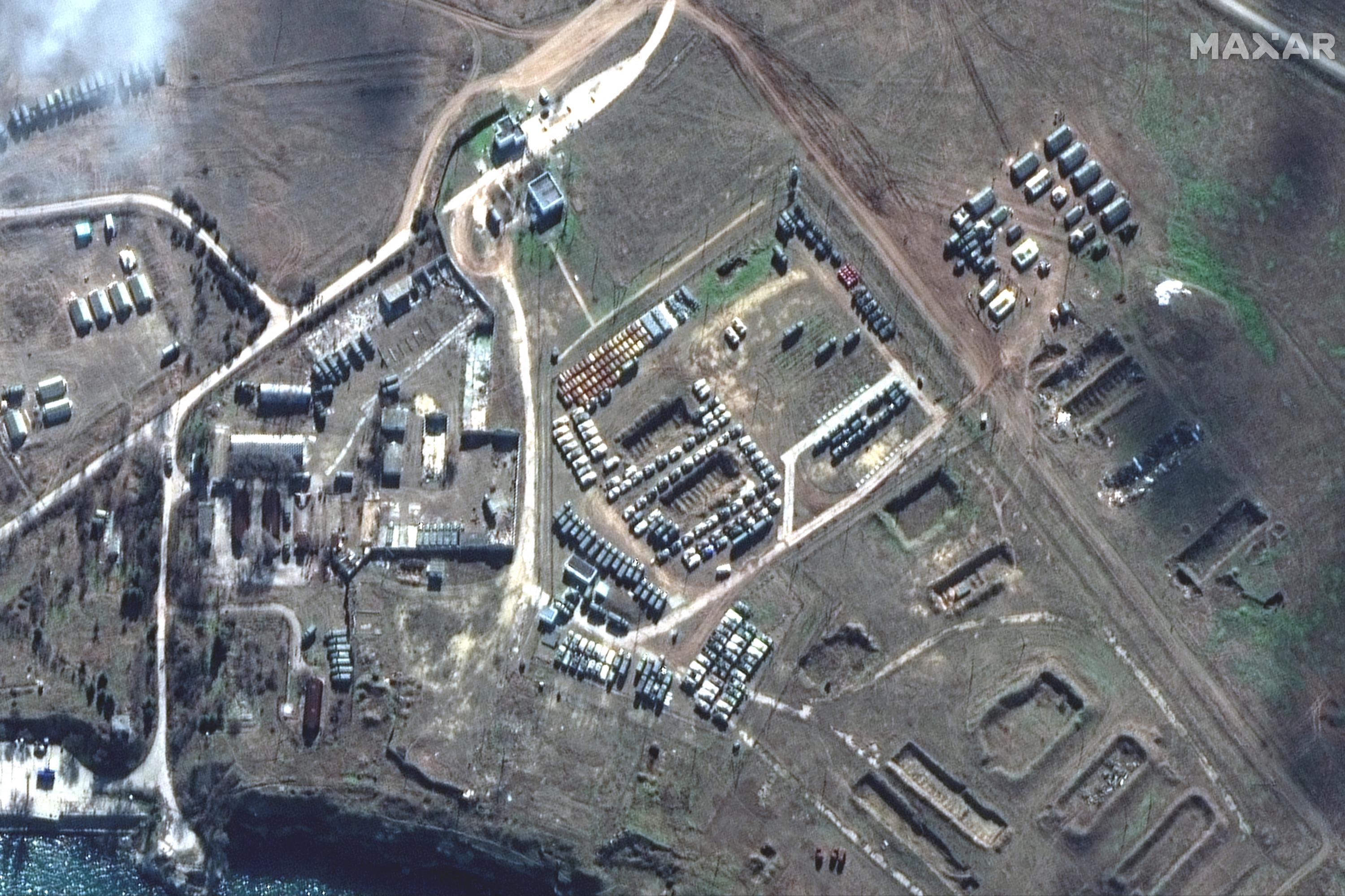 In Crimea, which Russia annexed from Ukraine in 2014, Maxar said it had identified a large new deployment of troops and equipment at Oktyabrskoye airfield north of the city of Simferopol, including 550 troop tents and hundreds of vehicles.