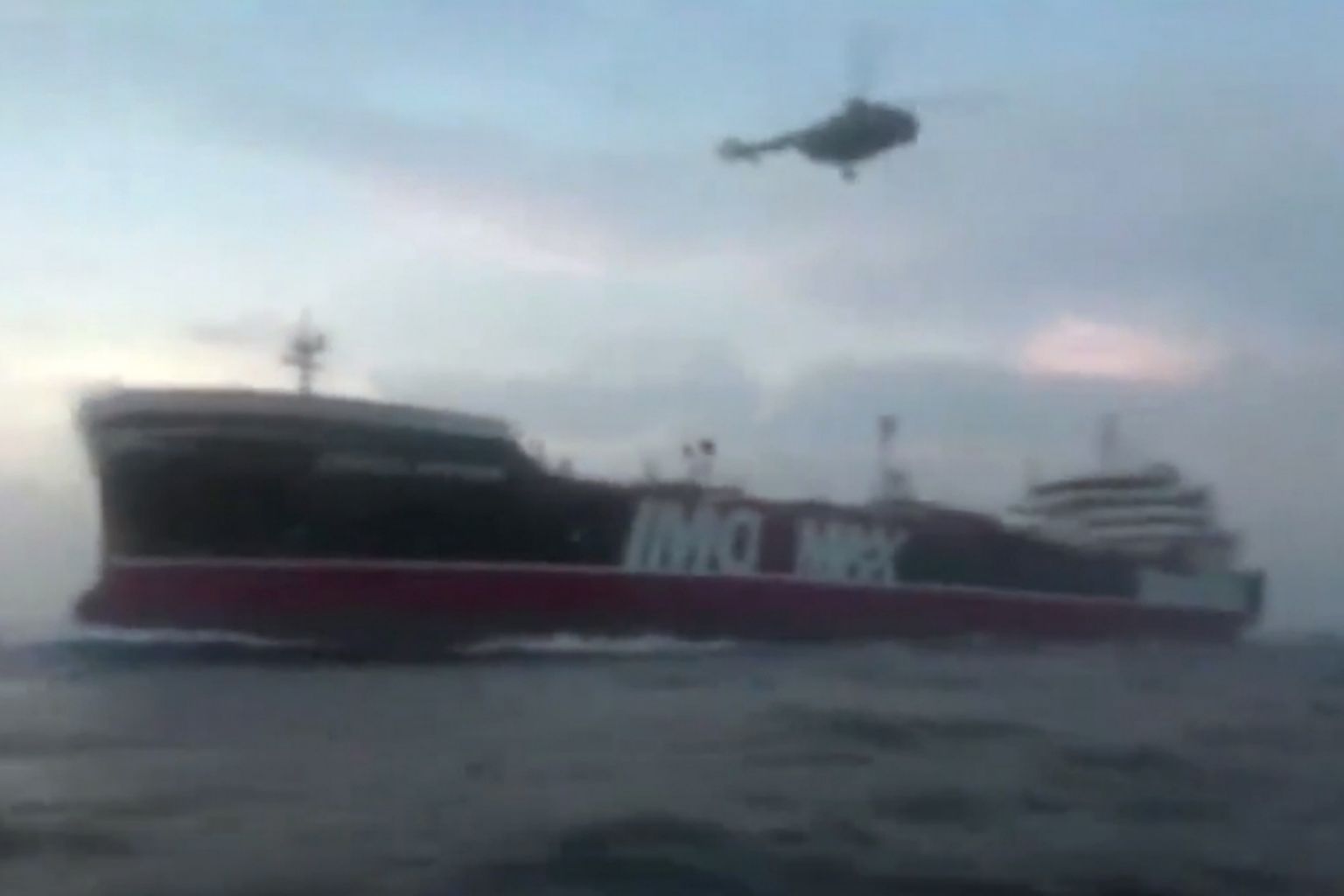 Members of Iran's Revolutionary Guard Corps reportedly boarding the British-flagged tanker Stena Impero in the Strait of Hormuz.