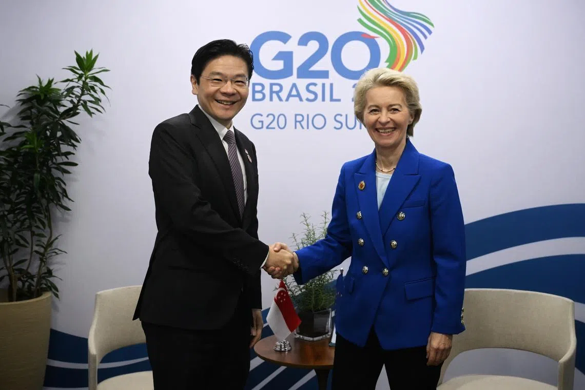 PM Lawrence Wong and European Commission president Ursula von der Leyen at a bilateral meeting during the G-20 summit.