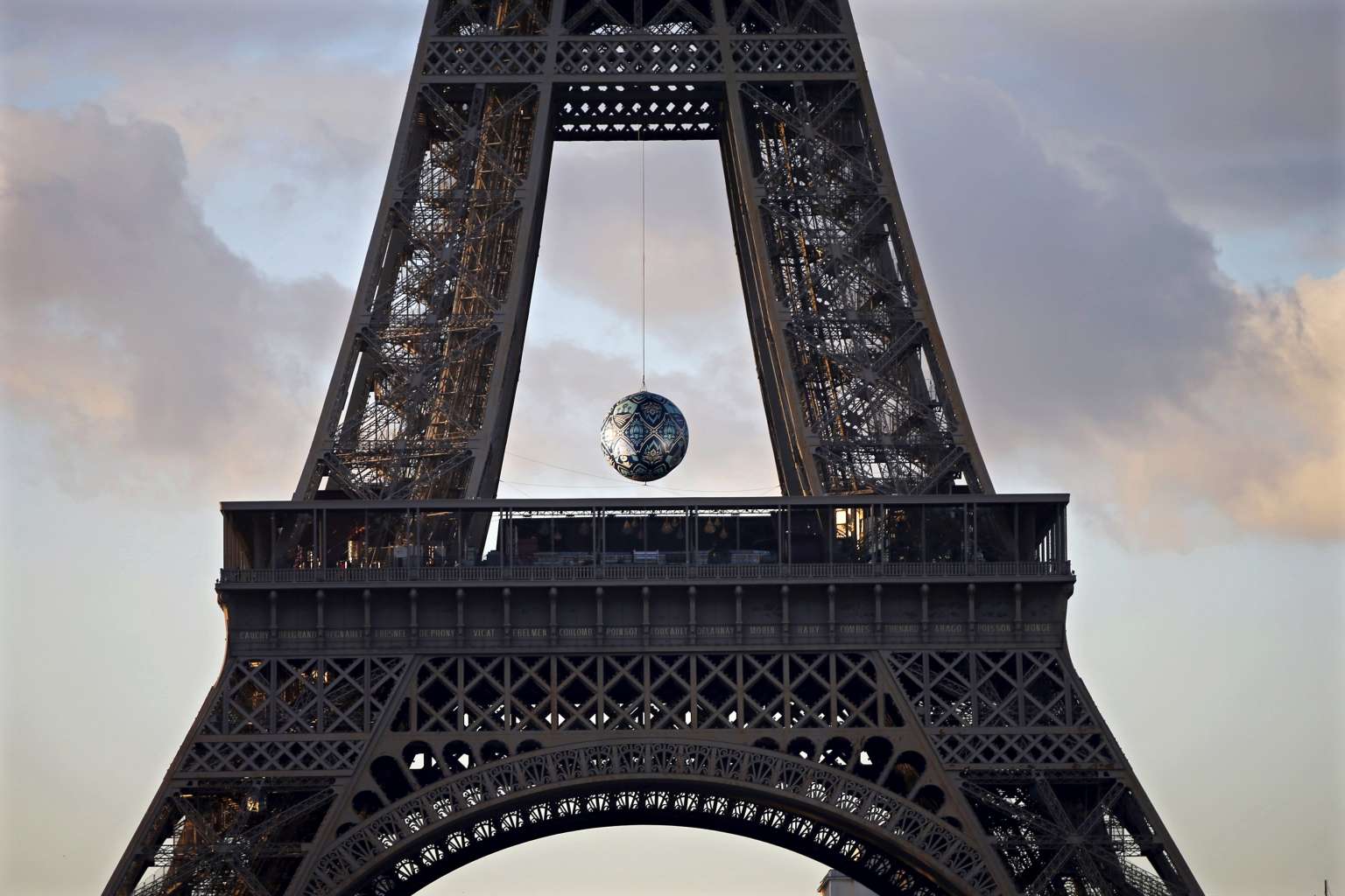 The artwork "Earth Crisis" by American artist Shepard Fairey is displayed in Paris for the climate talks.