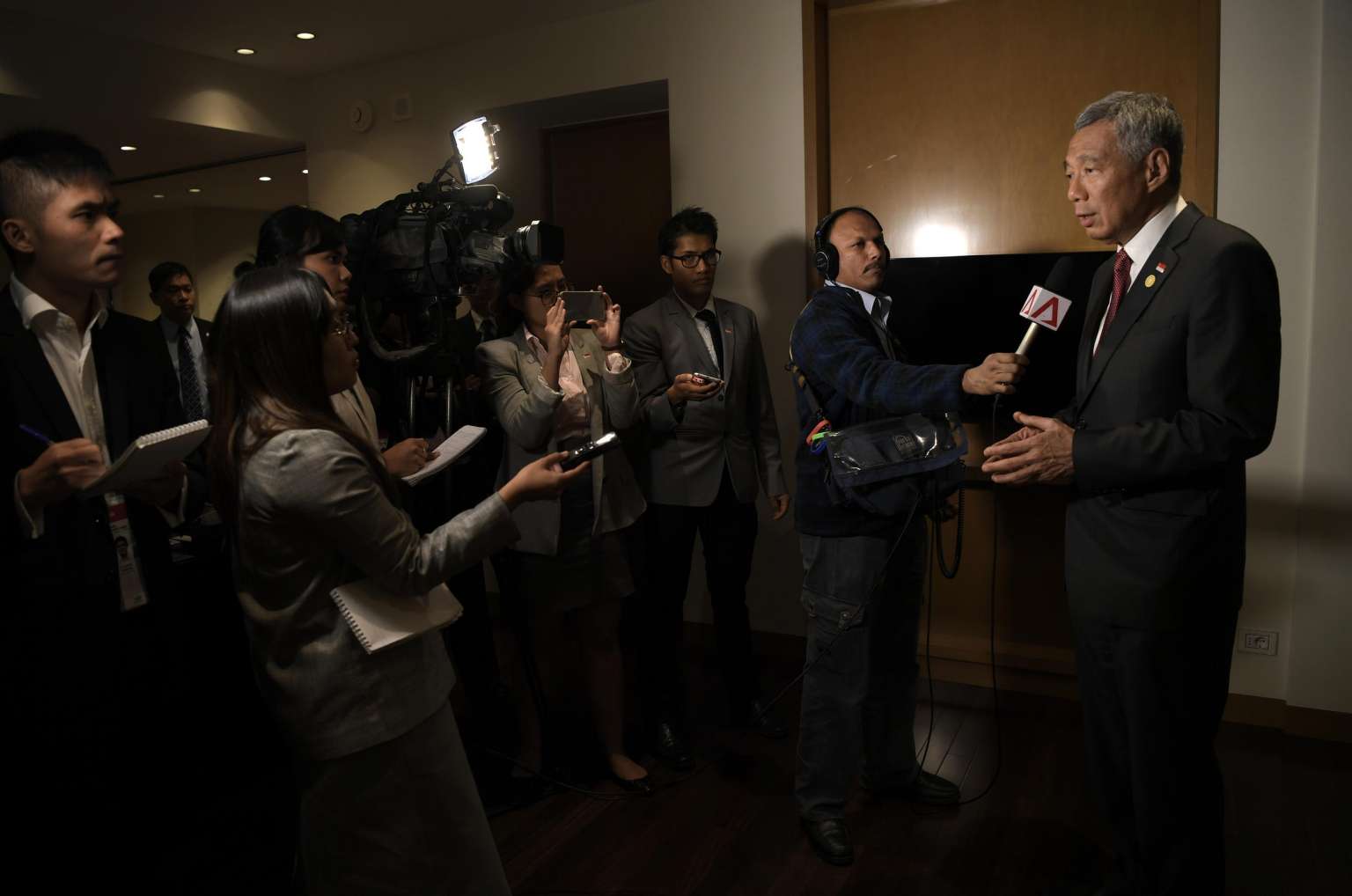 Prime Minister Lee Hsien Loong speaks to the Singapore media after the Apec summit.