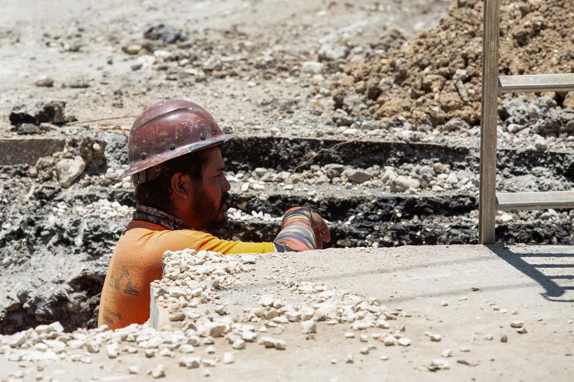 Construction workers in the middle of the day in the blazing heat, in San Antonio, Texas, on June 27, 2023.