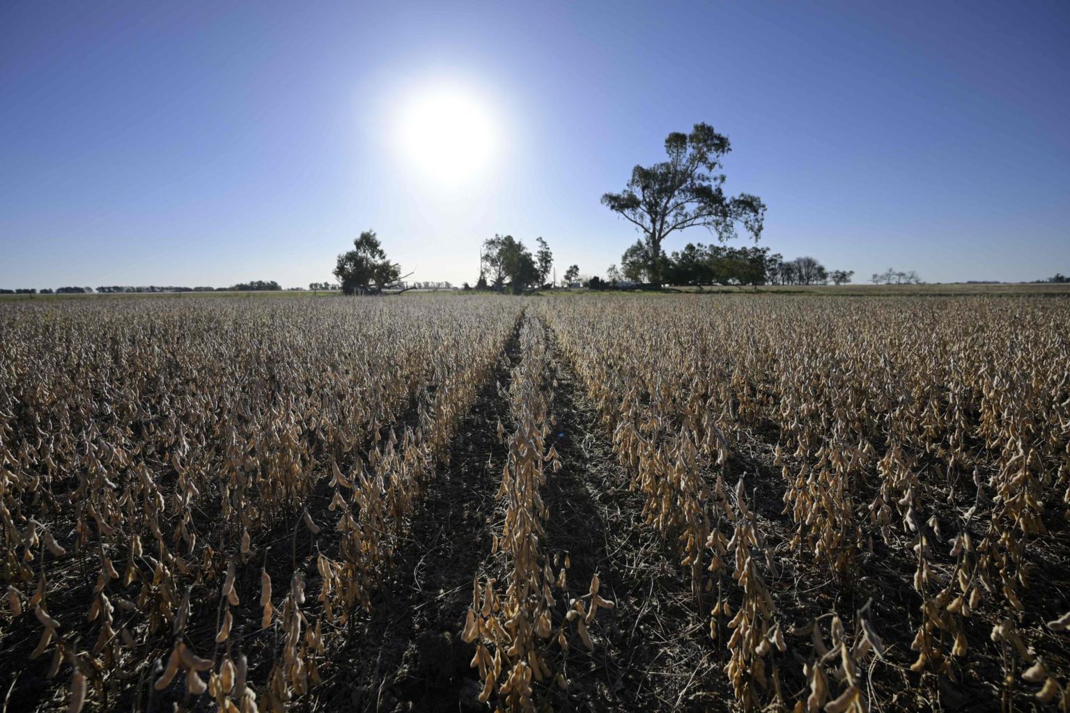 A soy field during the harvest season in Lobos, some 100 kilometres west of Buenos Aires, on April 29, 2022.