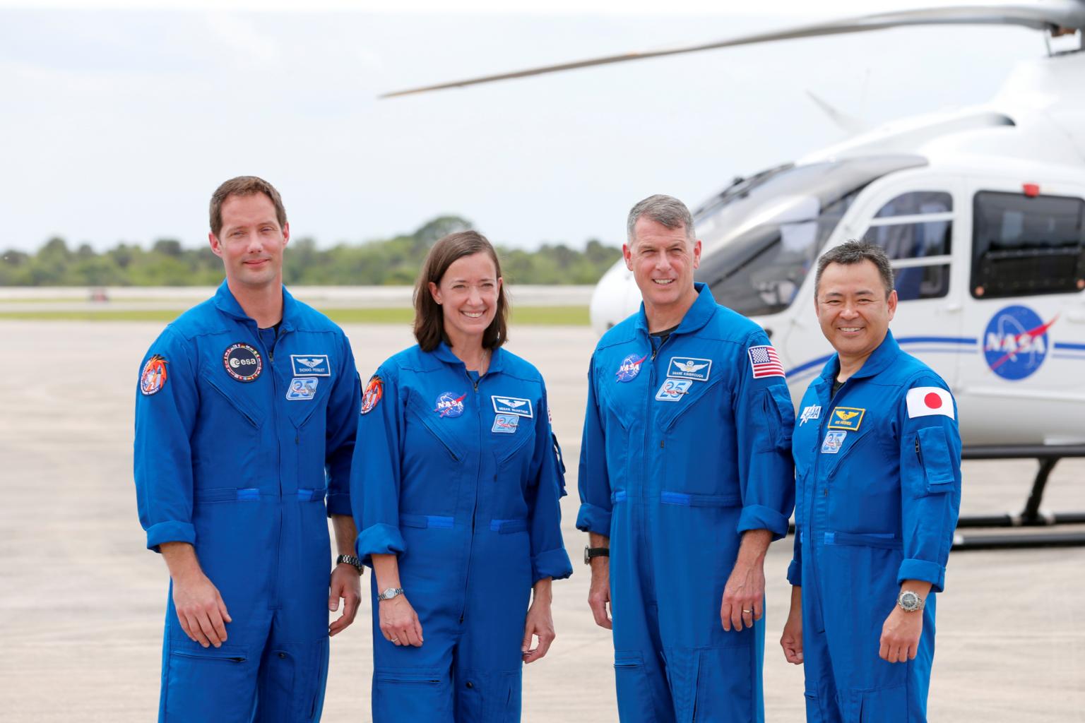 (From left) ESA astronaut Thomas Pesquet, NASA astronauts Shane Kimbrough and Megan McArthur, and JAXA's Akihiko Hoshide.