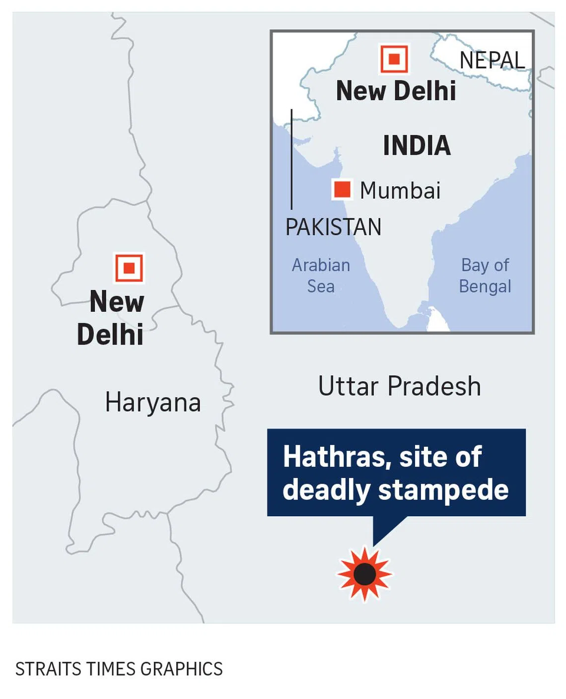 Overcrowding, combined with poor crowd management, led to the high death toll, officials said. Hathras is in Uttar Pradesh state, about 170km south-east of India’s capital, New Delhi.