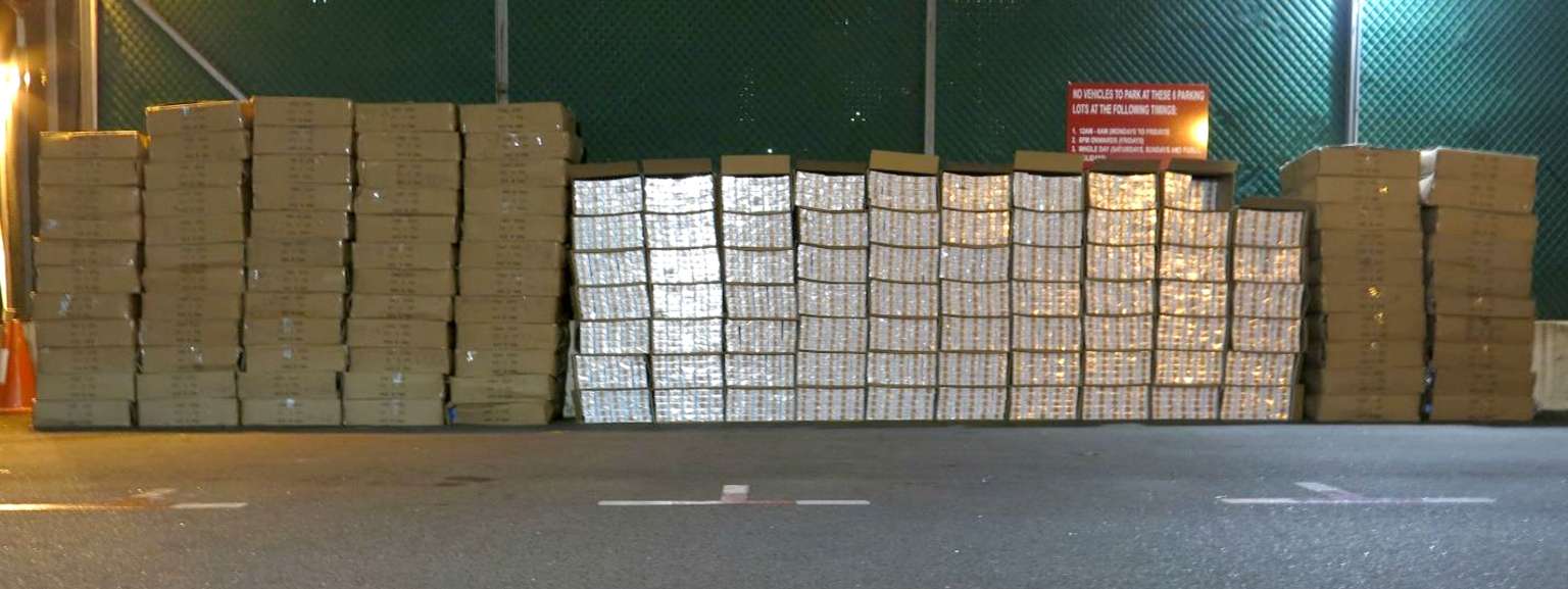 Cartons of duty-unpaid cigarettes seized by Singapore customs officers from a self-storage facility.