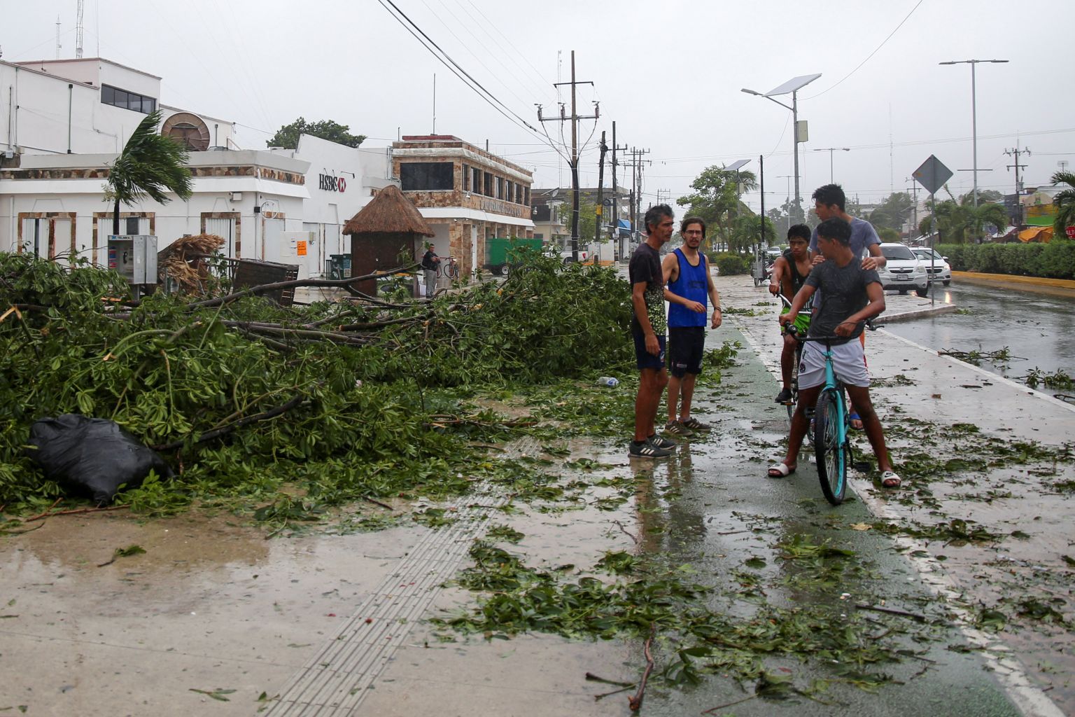 Social media images showed downed street signs and palm trees flailing in the wind near Tulum, and authorities reported some floods, power outages and toppled trees.