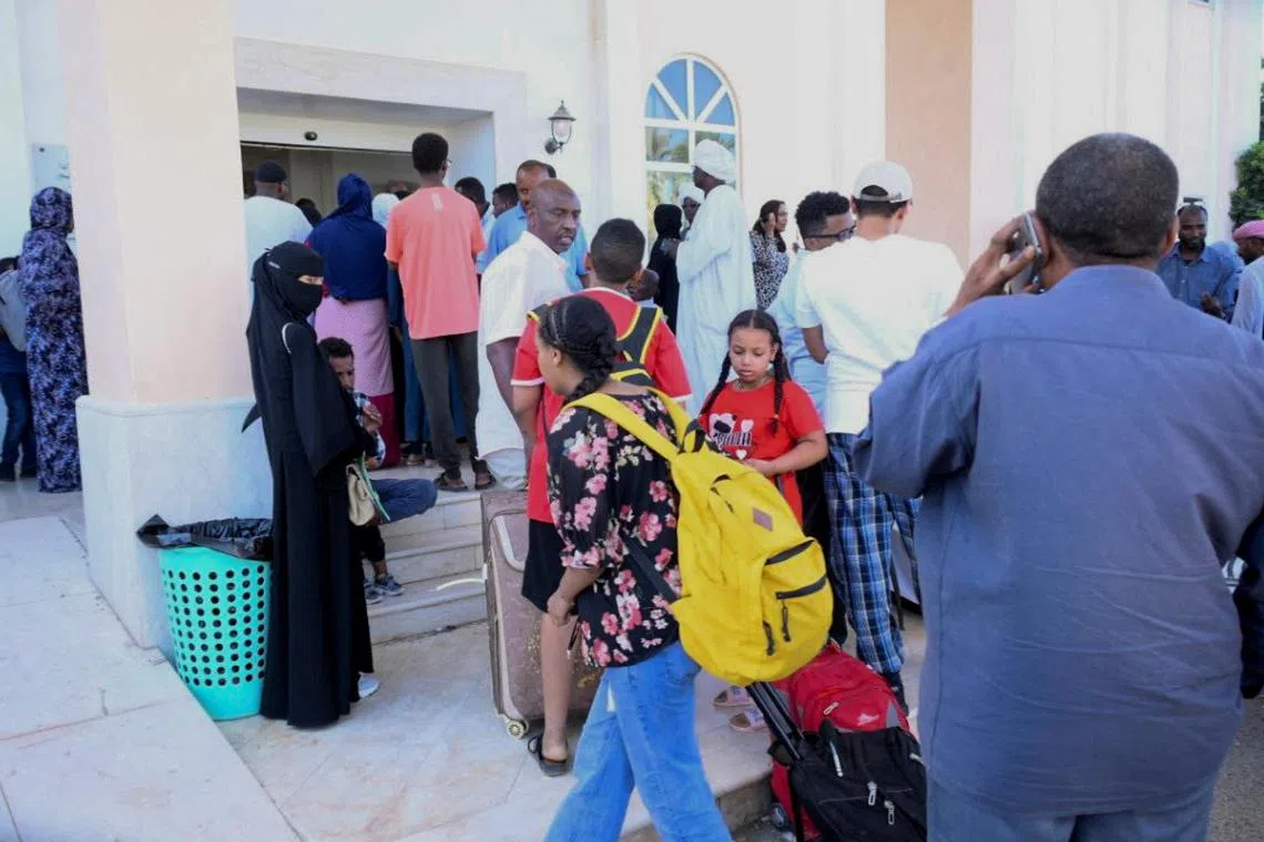 British nationals prepare for evacuation at a hotel at Port Sudan on May 1, 2023.