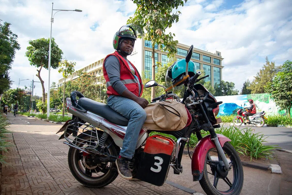 KIGALI – For nine years, Mr Celestine Nselgiumva, 34, has taken passengers around the streets of Kigali on his petrol-powered motorbike. But his biggest wish is to ride an electric motorbike.