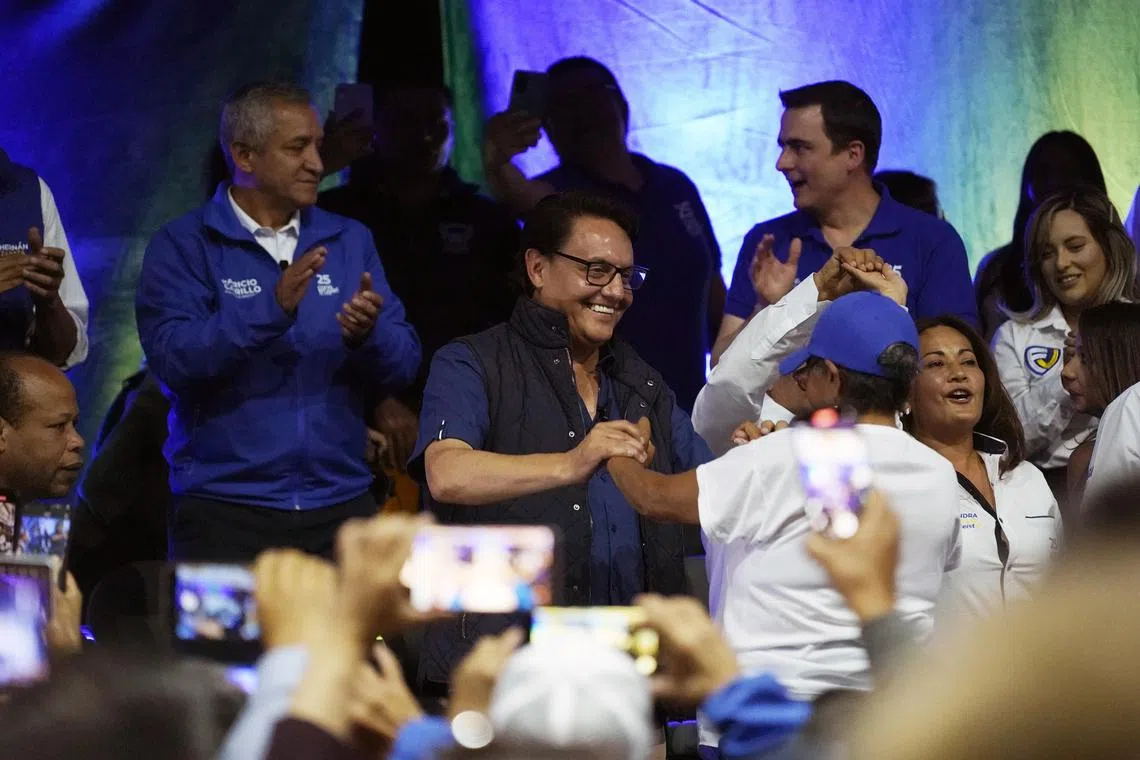Presidential candidate Fernando Villavicencio (centre) participating in a campaign rally in Quito on Aug 9, minutes before being shot to death.