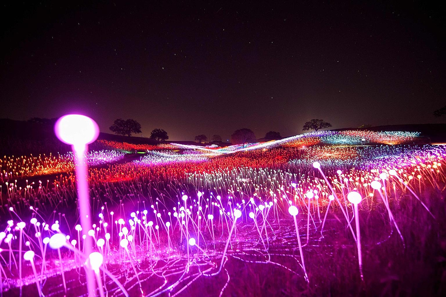 Field Of Light is a 6ha walk-through experience, Munro's largest artwork to date, comprising more than 58,800 stemmed spheres lit by fibre optics.